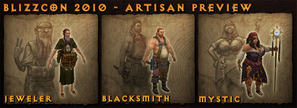 Blizzard ha finalmente rivelato i concept art di tutti e tre gli artigiani di Diablo 3. Inizialmente, durante il GamesCom 2010, era stato mostrato solo il Fabbro, quando è stato svelato il funzionamento della Carovana. Da poco, via Twitter, Blizzard ha pubblicato i concept art anche per le altre due categorie di artigiani, ossia il Mistico e il Gioielliere.
