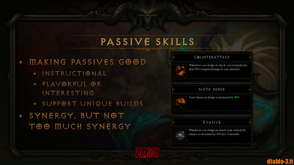 all'aumentare di quest'ultima, infatti, la Difesa guadagna un bonus del 25%. Esempi di abilità passive come questa offrono la possibilità di orientare ancora di più il Barbaro nella sua versione Tank.