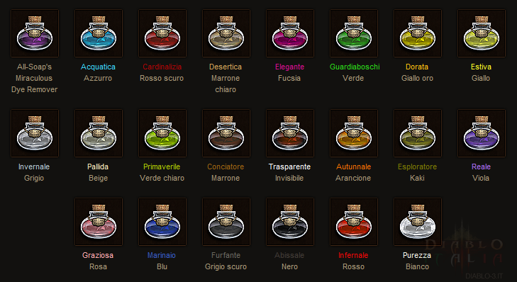 Le tinture della CE hanno uso infinito. Le avrete per sempre e potrete colorare tutte le cose che volete in "Nuvola" e "Fumo". I colori sono unicamente collegati alla CE.