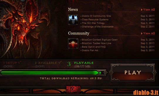 Da pochissimi minuti sta girando per la rete il client ufficiale della beta di Diablo 3. Pur trattandosi di una fuga di notizie, il desiderio di poterlo scaricare, anche solo per vedere la schermata di login, è sicuramente un passo avanti per lo sviluppo del gioco. Chiunque può scaricare il client, ma per poterci giocare serve obbligatoriamente l'invito alla beta, quindi un account Battle.net valido.