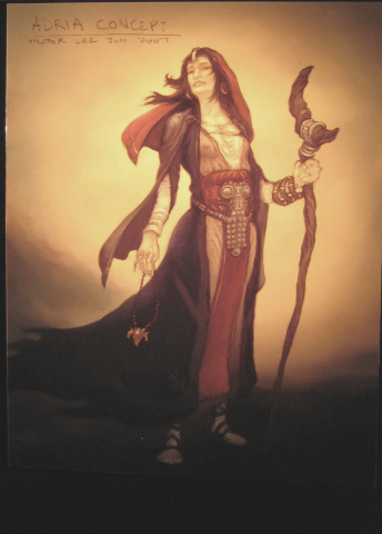 Un altro NPC con un ruolo importante e sopravvissuto al saccheggio della città di Tristram è la strega Adria. Mostrata in un concept art e confermata da Jay Wilson.