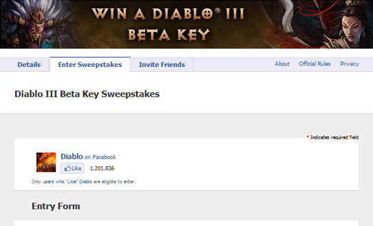Da pochi minuti è comparsa sulla pagina ufficiale Facebook di Diablo una lotteria per aggiudicarsi una chiave di accesso alla Beta di Diablo 3!