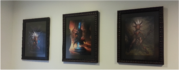 Tutti gli uffici interni, inoltre, hanno delle targhette con i nomi degli universi Blizzard e la sala delle riunioni è adornata con gli artwork dei personaggi principali Blizzard.