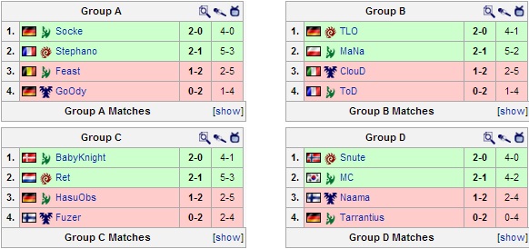 Nessuna grande sorpresa, comunque, durante la prima giornata di incontri: Stephano si conferma non in grande forma, nonostante ciò supera il suo gruppo; Snute e TLO si dimostrano in formissima e vincono 2-0 il loro raggruppamento.