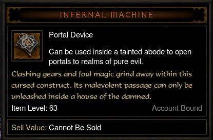 Unica nota dolente: se, come me, non avrete trovato il componente leggendario che vi serviva, vi occorrerà ritrovare le tre chiavi per ricostruire il Congegno Infernale e ripetere lo scontro con i boss. Non è detto, però, che siano sempre gli stessi, perché ogni volta si potrà aprire nella dimora un portale diverso (se avete letto l'articolo sulla Macchina Infernale, in totale gli incontri sono 3). Perciò, prima di usare un Congegno Infernale, vi consiglio caldamente di munirvi di 5 bonus Nefilim e di un buon equipaggiamento da Magic Find (e, perché no, se siete temerari e volete avere il 100% o quasi di possibilità di trovare i componenti dell'anello, provate con MP 10).