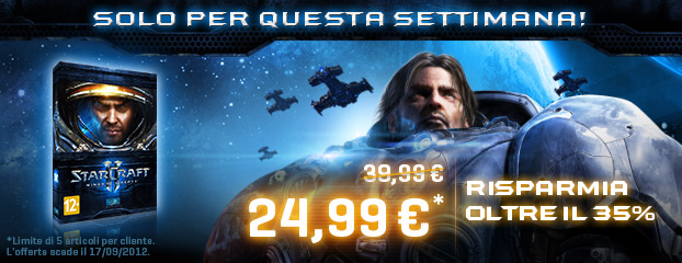 Questa settimana puoi acquistare StarCraft II: Wings of Liberty a soli 24,99 € scaricandolo direttamente da Blizzard e risparmiando 15 € rispetto al prezzo di vendita. Preparati alle finali europee della StarCraft II World Championship Series invitando un amico a scoprire StarCraft II in multigiocatore, affrontando insieme entusiasmanti battaglie nel settore Koprulu.
