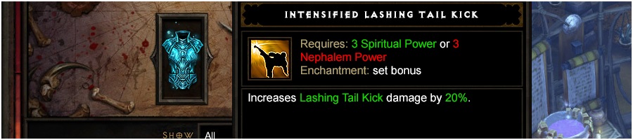 Esempio: se un giocatore trova un oggetto con “+X Potere Oscuro”, potrà sostituire quel potere con un affisso che aumenta un’abilità da Cacciatore di Demoni; se troverà un oggetto con “+X Potere Tribale”, potrà sostituire il potere con un affisso che aumenti un’abilità dello Sciamano, e così via. Se il giocatore trova un oggetto con “+X Potere Nefilim”, invece, potrà sostituire quel potere con un affisso che aumenta l’abilità di una classe qualsiasi.
