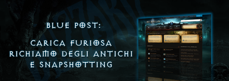 Ci sono un po' di cambiamenti interessanti in arrivo (soon) nel PTR riguardo Carica Furiosa. Stiamo migliorando il suo modo di muoversi, aumentando la distanza percorsa e la velocità, e stiamo facendo un po' di pulizia per rendere l'abilità più fluida. Gli oggetti saranno più sinergici con Carica Furiosa: Vilguardia è stata revisionata con un nuovo potere Leggendario per Carica Furiosa. Inoltre, +% Danno da Carica Furiosa è stato aggiunto come possibile affisso degli oggetti per Spalle, Torso e Armi Poderose a due mani. Nel complesso, dovreste vedere dei miglioramenti significativi. Teoricamente dovrebbero essere tutti inseriti nella prossima build PTR, così potrete dirci come vi sembrano! :)