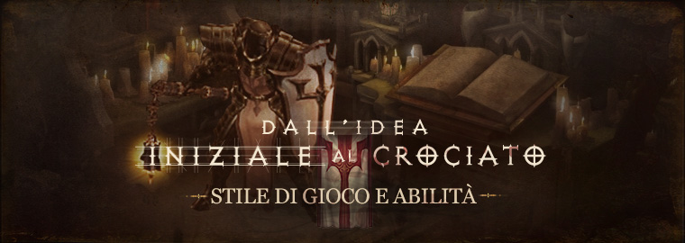 Il brainstorming ha rivestito un ruolo chiave nella creazione delle abilità del crociato così come le vedete oggi, fornendoci le immagini di un potente guerriero che di volta in volta brandisce un'imponente arma, sbaragliando i nemici come Sauron ne La Compagnia dell'Anello (Attacco a Spazzata), lancia uno scudo contro i demoni nemici, sul modello di Capitan America (Scudo Benedetto), o richiama la furia dei cieli come Zeus (Furia Celeste).