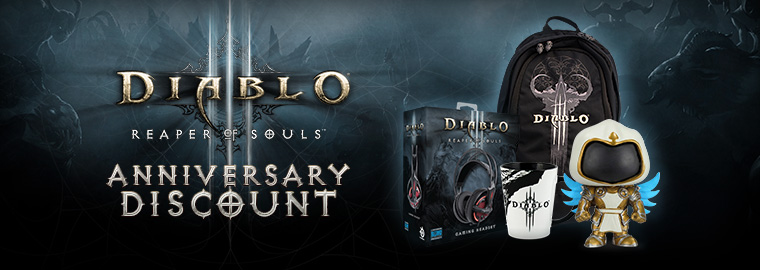 Per festeggiare il secondo anniversario di Diablo III, abbiamo organizzato dei saldi infernali presso il negozio statunitense di merchandise Blizzard. Solo per un periodo limitato, goditi prezzi speciali su una selezione di merchandise a tema Diablo, come illustrazioni, abbigliamento, libri, fumetti, oggetti da collezione e molto altro!