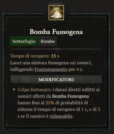 Sotto la dicitura Modificatori, trovate la definizione di cosa può fare questa abilità quando si ottiene un Colpo Fortunato. Senza questa o altre definizioni di Colpo Fortunato, i tuoi Colpi Fortunati andranno sprecati e non serviranno a nulla.